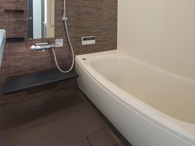 3つの仕様からお選びいただけるバスタブ、壁パネルカラーや浴槽カラーも自由に選択できます。水はけのよい溝パターンの床は、滑りにくく、キレイを保てます。